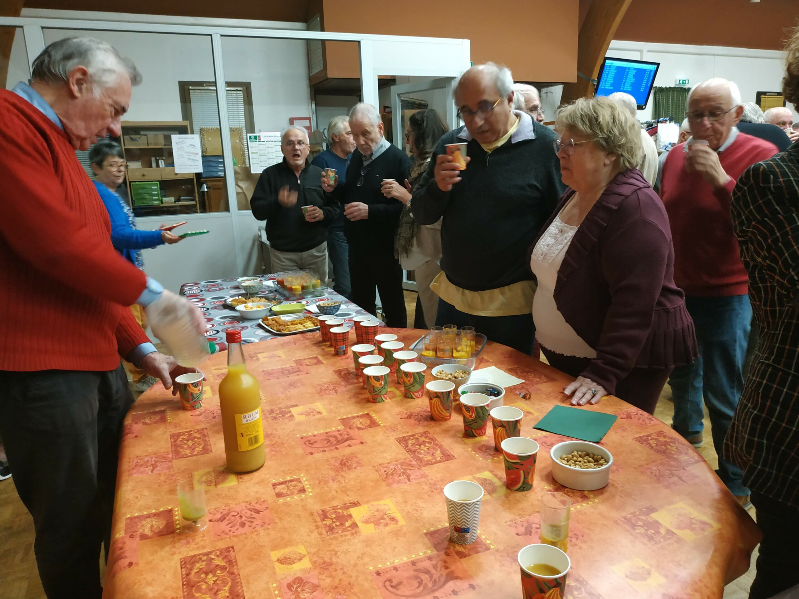 Claudette et Michel ont offert à tous les participants un apéritif ‘ amélioré ‘ et le Club a offert le repas qui a suivi !